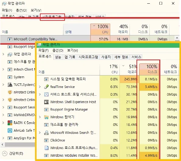 1. Ctrl+Alt+Delete 버튼을 동시에 눌러 작업 관리자 시작 → 시작프로그램을 통해 PC 부팅 시,