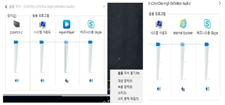 업 표시줄 - 볼륨 클릭 후, 볼륨 믹서에서 [Internet Explorer] 스피커를 음소거하지 않았는지 확인이 필요합니다.