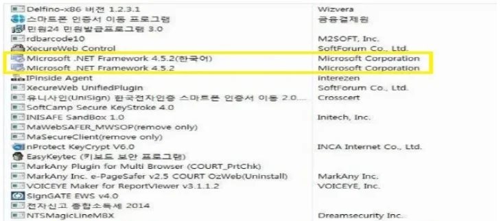 2. Microsoft.NET Framework 4.5.2 프로그램 제거해야 합니다.