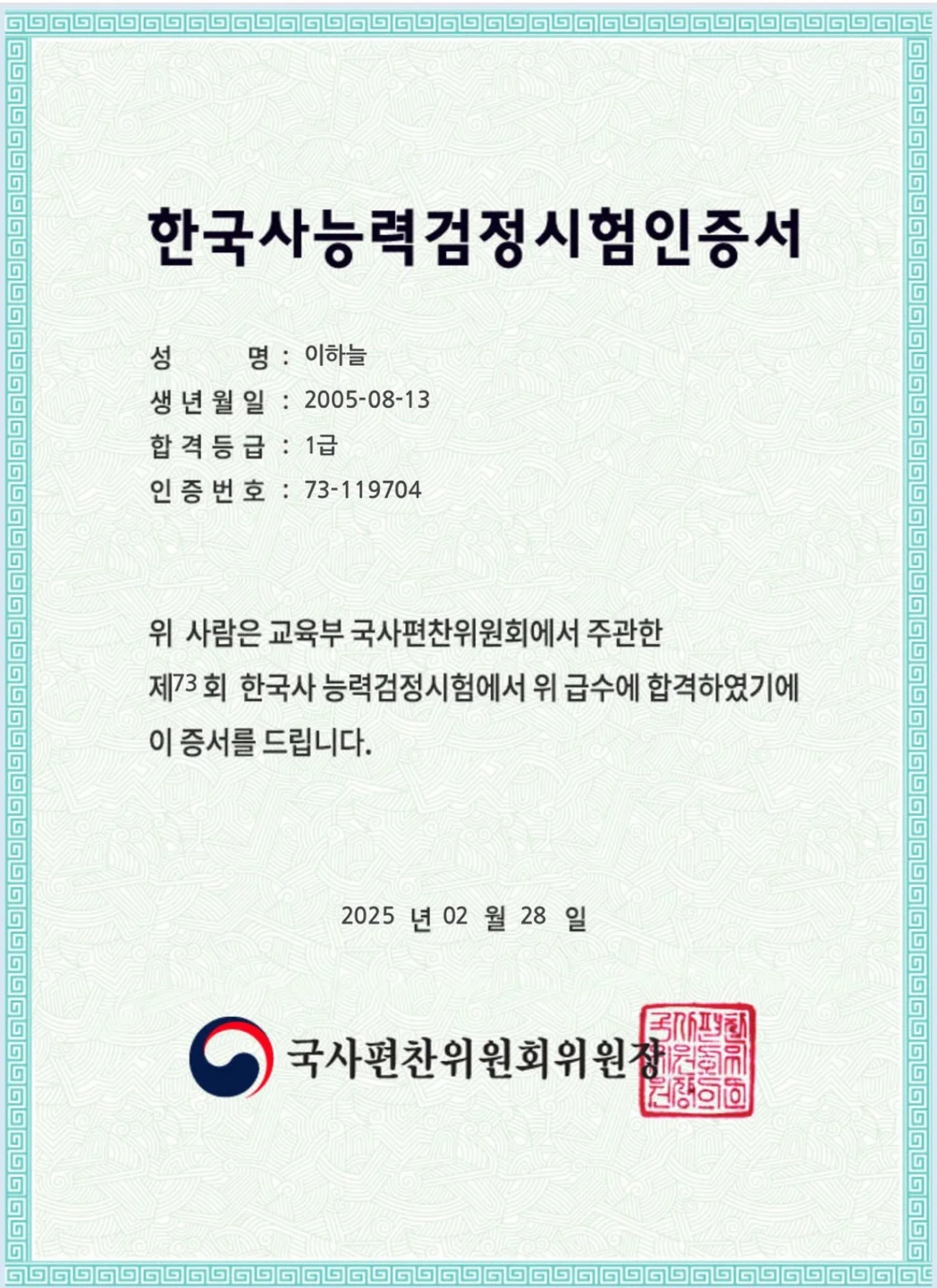 - [73회] 1급 합격 한국사